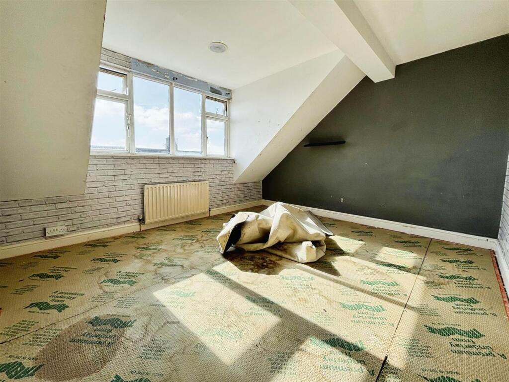 A first floor landing leads to the main double bedroom with a large double glazed window to front, gas central heating radiator, carpeted flooring and built in wardrobe/storage cupboard, a family bathroom with a corner bath with electric shower over, w/c, wash hand basin, gas central heating and two double glazed windows to rear. Stairs to the second floor.